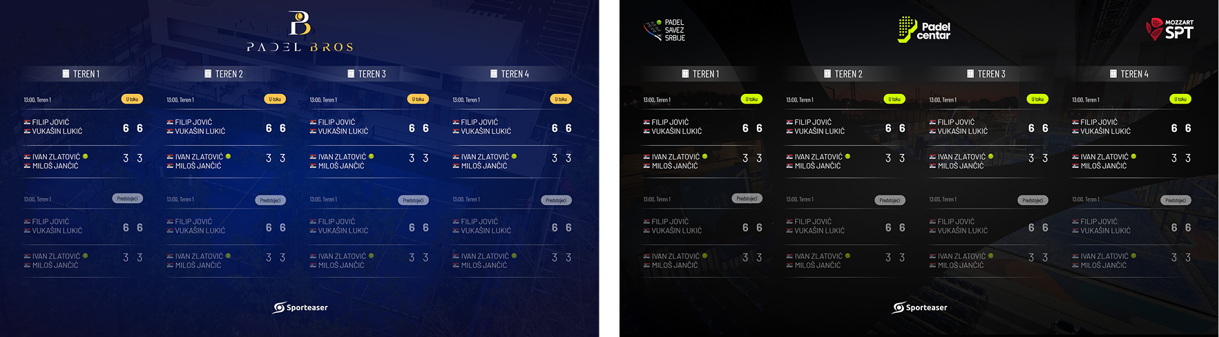Cafe Scoreboard is software displayed on screens in the café or lounge zone of the sports center.