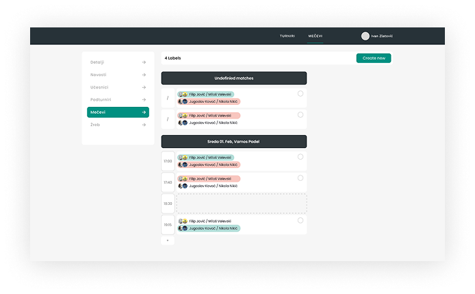 The Host is the central hub for managing all administration: entering teams, creating groups, draws, editing schedules and lineups, all done quickly and intuitively. Any change- whether it’s replacing a team, adding a player, or shifting a match time- can be completed in just a few clicks. Even better, all data can be automatically exported into a printable version, ideal for sharing via WhatsApp groups, printing, or on-site distribution, just like we do in the Belgrade Padel League.
