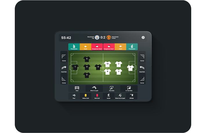 Unlocks all advanced features and is used mostly on tablets. The official can track complete statistics (passes, rebounds, errors, blocks, assists), the same level of detail used in EuroLeague, Champions League, or Roland Garros.