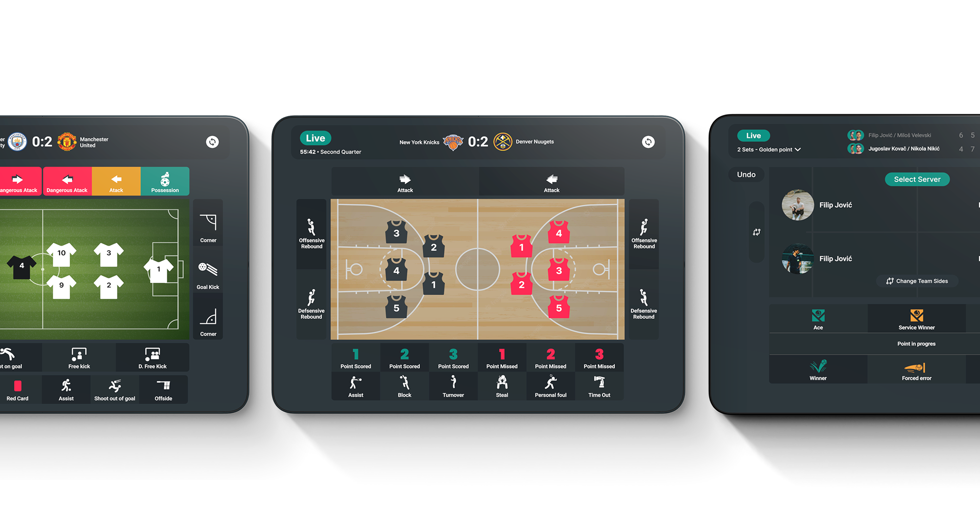 Intended for simple score tracking- points in padel, baskets in basketball, goals in football. Suitable for less demanding matches and works even on a regular smartphone.